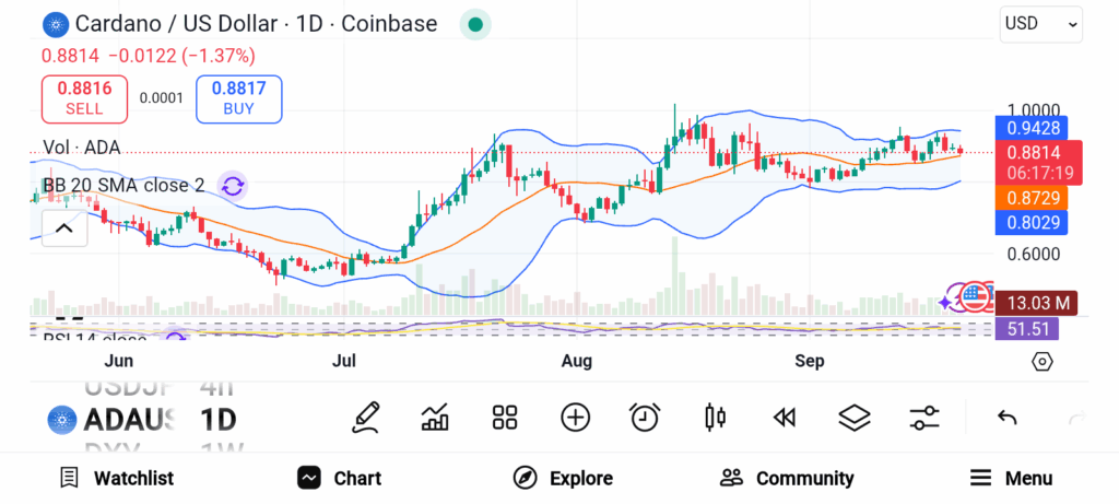 According to the most recent data provided from CoinGecko in September 2025, ADA has traded at nearly equal levels, which indicates the type of steady demand that conservative investors prefer to see in their long portfolio positions. At this point, with continued research development of Cardano, a steady approach to upgrades can provide it with the means to improve consistently without unexpected volatility.