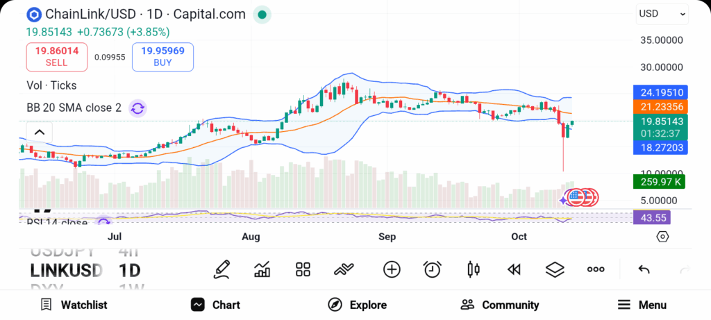 Chainlink is one of the most important pieces of crypto infrastructure. As a leading oracle network, it is the first to connect real-world data to smart contracts. The capability is the source of the power of DeFi platforms, lending systems, and even blockchain-based insurance products. While LINK’s price has been relatively slow compared to other large caps, the company’s fundamentals are still viable.
