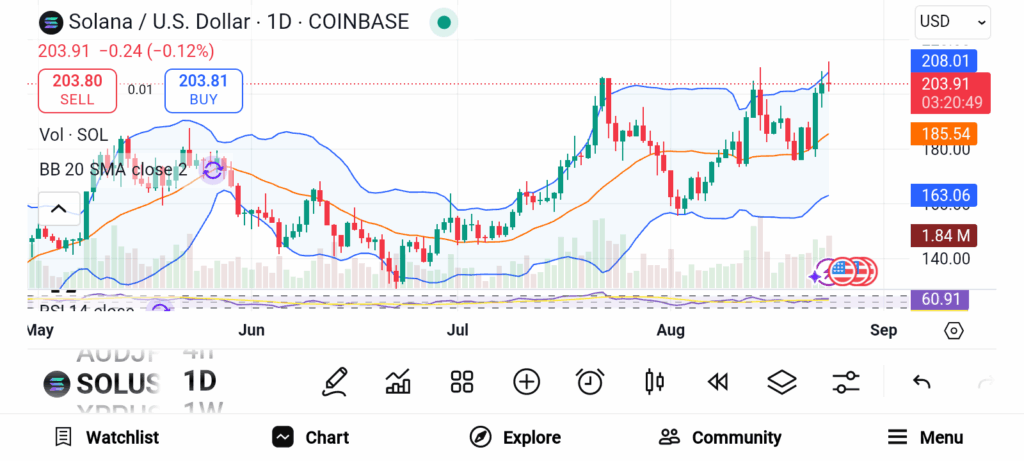 Solana’s SOL has been riding a strong wave of bullish energy. The token has jumped over 22% in a single week, breaking above $200. Its market capitalization now exceeds $108 billion, showing renewed investor confidence. At the same time, demand for U.S.-listed Solana exchange-traded funds is climbing quickly.The first Solana plus Staking ETF launched in July, and trading activity is already significant. Analysts estimate a 90% probability of Solana Spot ETF approval in the near term. This would unlock powerful institutional support, boosting adoption even further. Combined with technical strength and growing real-world usage, Solana appears ready for an impressive comeback.
