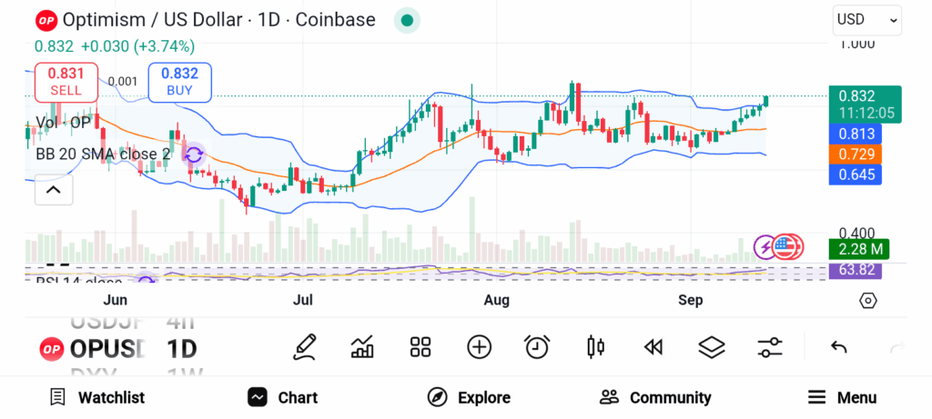 - Surpassing $0.833 may push OP toward $1 despite upcoming token release volatility.