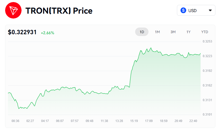 TRON recorded a moderate 2.66% increase, closing at $0.322931 by the end of the day. Its movement remained more restrained compared to LINK and ADA, though it still participated in the general uptrend. The token traded within a narrow range for most of the morning before lifting gradually in the afternoon.