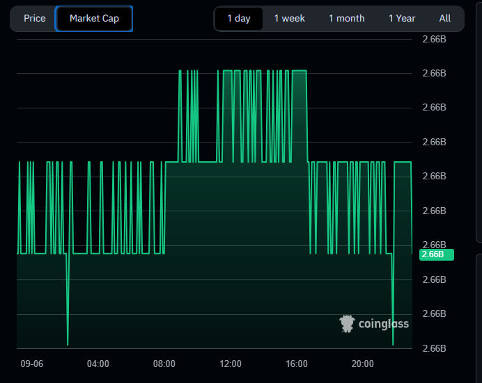 World Liberty Financial USD presented an irregular pattern throughout the day, holding around $2.66B. The chart revealed sharp spikes and drops, pointing to unstable activity. The structure reflected inconsistent liquidity and frequent erratic movements.