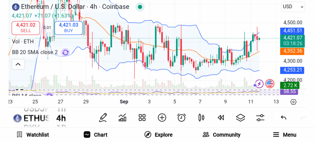 Ethereum remains the undisputed leader in decentralized finance. The network supports thousands of applications, driving massive activity across lending, trading, and staking. At a price near $4,300, Ethereum is testing resistance around $4,550. A confirmed breakout could open the path toward $5,800 to $7,000 within the next year. Longer-term projections reach as high as $15,000, fueled by Ethereum 2.0 and expanding DeFi adoption. Institutional demand adds another layer of support, especially with ETFs making Ethereum more accessible. Staking also strengthens the network while rewarding holders with passive income. This combination of fundamentals and adoption ensures Ethereum remains a cornerstone for any crypto portfolio.