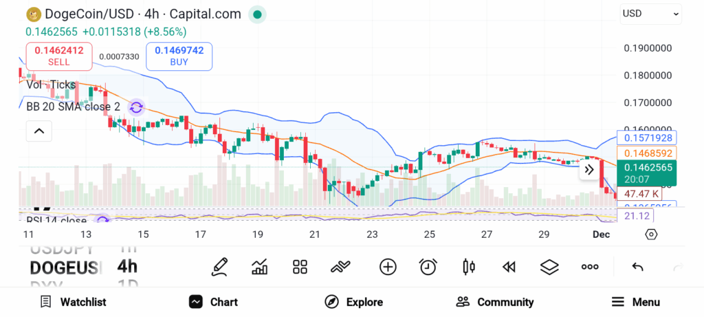 Dogecoin is the most recognizable meme coin, trading around $0.15 on November 26. Even in market downturns, DOGE has held up better than Bitcoin. Elon Musk’s social media mentions and community-driven memes keep DOGE relevant through every cycle. Traders seeking liquidity and strong name recognition often prefer DOGE.