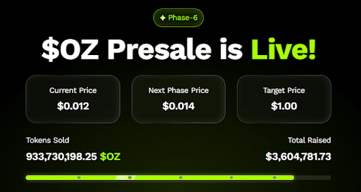 While BNB dominates among established coins, Ozak AI is leading a revolution at the intersection of artificial intelligence and blockchain technology. Currently priced at $0.012 in its sixth presale stage, Ozak AI has already raised over $3.5 million and sold more than 930 million tokens—a milestone that few OZ presale projects have reached in such a short period.