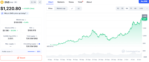 BNB Surges Above $1,150 as Binance Ecosystem Expands