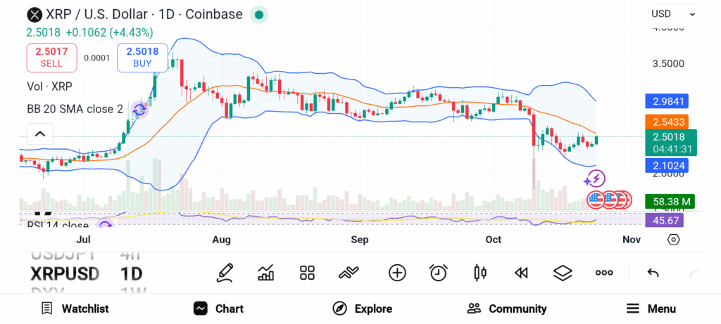 This move opens new growth avenues and strengthens the broader Ripple ecosystem. By expanding into stablecoins, the company aims to challenge USDT and USDC’s dominance. Technically, XRP has delivered an impressive 349% gain over the past year, far surpassing Bitcoin’s 62%. The token recently corrected from a seven-year high of $3.65, creating a potential buying opportunity.