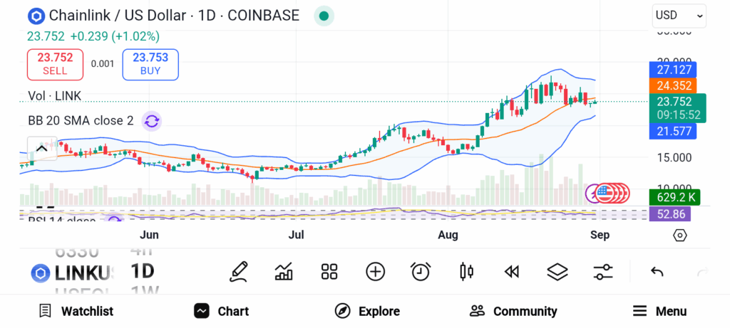 Chainlink serves as the backbone for data in blockchain systems. Since blockchains cannot pull outside information, Chainlink delivers the real-world data they need. This makes the project essential across nearly every crypto sector. Recently, $LINK surprised many traders with a sharp rally. The price jumped more than 35% in four days. It moved from 16 cents on August 7 to above 22 cents today. The surge came after the launch of Chainlink Reserve. This new reserve holds $LINK tokens to strengthen the network long term. Analysts like Ali Martinez suggest that closing above $24 could spark a rally to $95. That would mean a 4x return from that level.