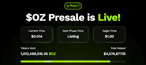 Ozak AI is experiencing a sharp escalation of whale interest as it nears the end of its final presale phase. The project has already delivered a 1,300% return for early investors, with the token price jumping from $0.001 to its current $0.014 in Phase 7.