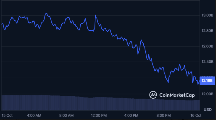 Chainlink trades at $17.94, down 5.03% in the past day, with a market cap of $12.16 billion. The price chart highlights a steady downward trajectory throughout the session, as LINK fell from near $13 billion in market value earlier in the day. Daily trading volume dropped 31.67%, reinforcing the narrative of cooling market momentum and declining speculative interest.