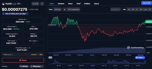 Floki (FLOKI) is trading at $0.00007275, holding firm despite a volatile week in the meme coin market. The token’s stability reflects renewed interest in community-led projects, though analysts question how long the momentum can last.