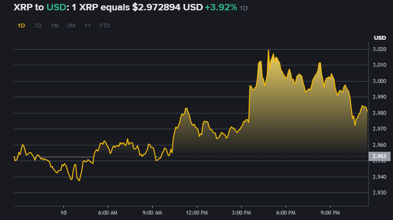 - XRP has held its own above an important mark of 2.95 in spite of pullbacks, and it now has a new level of resistance at the key point of 3.00.