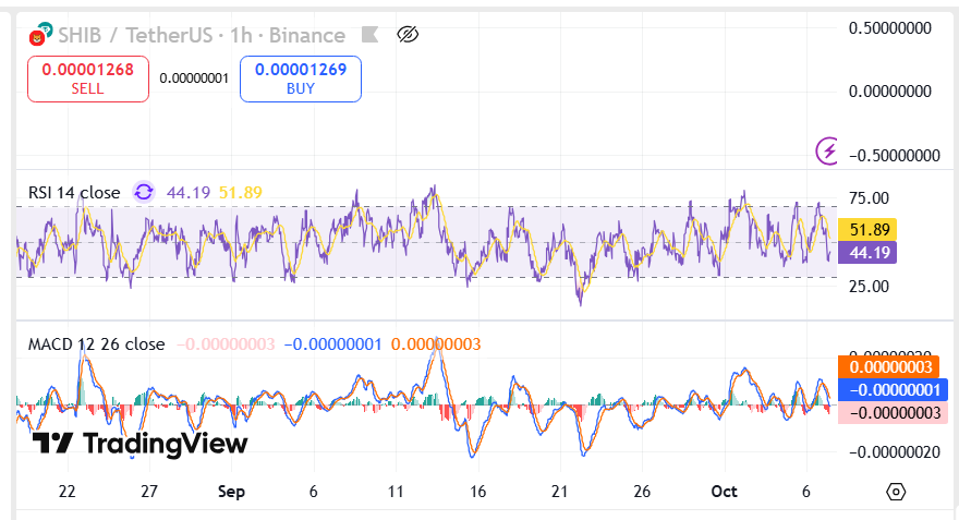 The support is currently at the mark of 0.00001258 and has been tested several times in the last several sessions. In the meantime, the upward movement is still limited by a resistance of $0.00001300.The present arrangement shows that the traders are holding balanced positions and monitoring the possible breakout triggers. It is important to note that SHIB has a trading pair with Bitcoin value of 0.091020 BTC and with Ethereum, a value of 0.082707 ETH, which is stable across markets.