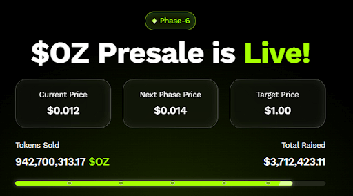 While Solana’s $500 target could deliver solid returns, Ozak AI’s current stage opens the door to much larger percentage gains. With OZ presale price at $0.012, the project combines artificial intelligence and blockchain technology, creating a platform that enhances predictive trading, on-chain intelligence, and decentralized applications.