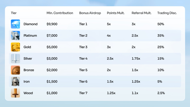 - Referral Multiplier: Lifetime bonus on trading fees from referred users