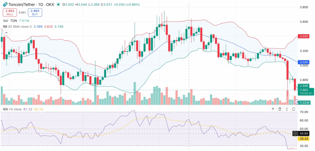With AlphaTON Capital’s substantial investment and the tightening of Bollinger Bands, Toncoin could be poised for a potential recovery. Market activity and technical indicators indicate that the token may find strength at the $2.60 support level, with the possibility of a rebound toward the $3.00 mark.