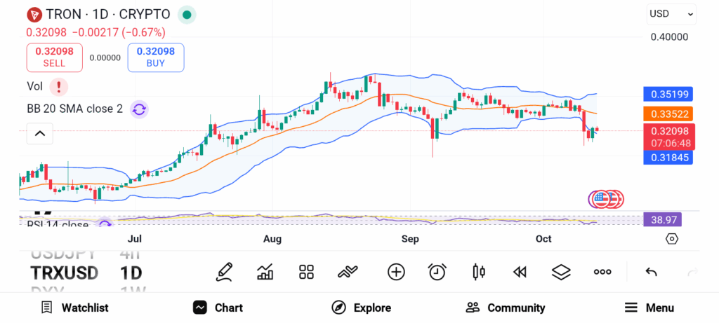 TRON’S TRX has remained remarkably stable even after widespread sell-offs across the market. As of mid-October, TRX trades near $0.334, holding within the $0.334 to $0.355 range. This stability reflects sustained user engagement and steady network growth. TRON recently surpassed 335 million accounts, showing how broad the network’s adoption has become. It continues to rank among the most active blockchains globally, driven by strong DeFi and stablecoin use.