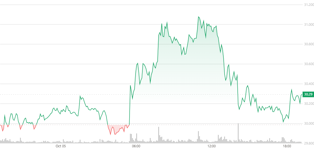 Such performance highlights the strength of AVAX in the face of continued expansion of its DeFi and subnet ecosystem. The steadfast recuperation of the token above the psychological support of $30 implies enhancing mood and new involvement. With the present purchasing momentum, AVAX might re-test the 31.50 to 32 area, where throughout resistance might outline its immediate outlook.