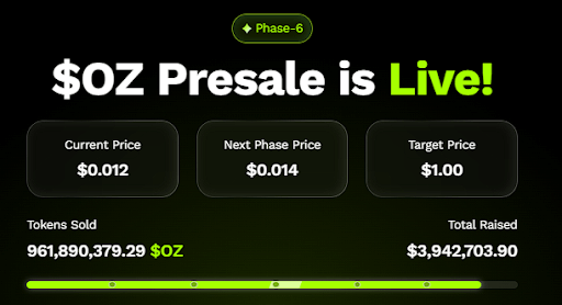 Ozak AI is currently priced at $0.0012 in its 6th OZ presale stage, with more than 960 million tokens sold and over $3.8 million raised. Its projected $1 price target gives early investors a chance at nearly 100x gains—far exceeding the realistic upside of XRP, BNB, or SOL at their current valuations.