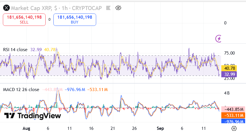 The volume has significantly decreased with the 24-hour trading standing at $4.91 billion, equivalent to a sharp decline of 24.93%. This has changed as the circulating supply still stands at 59.61 billion XRP, whereas the cumulative supply is 100 billion. Price movement has been plagued by resistance at the present, with technical indicators projected to create volatility in the future.
