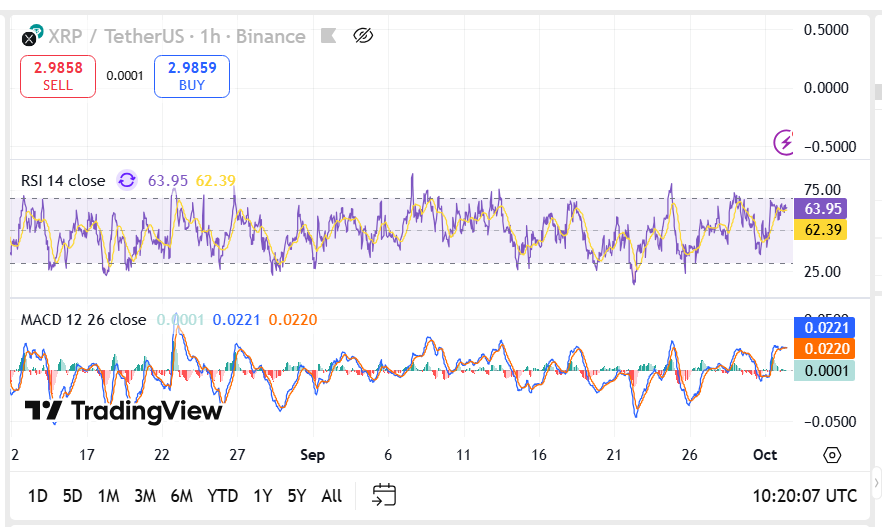 XRP maintained steady price action with the token trading at $2.93 after posting a 3.1% gain in 24 hours. The latest trend was triggered by the fact that short-term technical indicators neared an important resistance line. The XRP was also trading at 0.00002520 BTC as reflected in market data; this is a minor 0.1% increase.